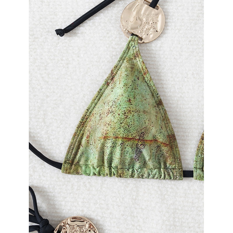 Metal-Decorated Three-Point Bikini, Adjustable Drawstring Triangular Cup Swimsuit, Seaside Vacation Two-Piece Swimsuit