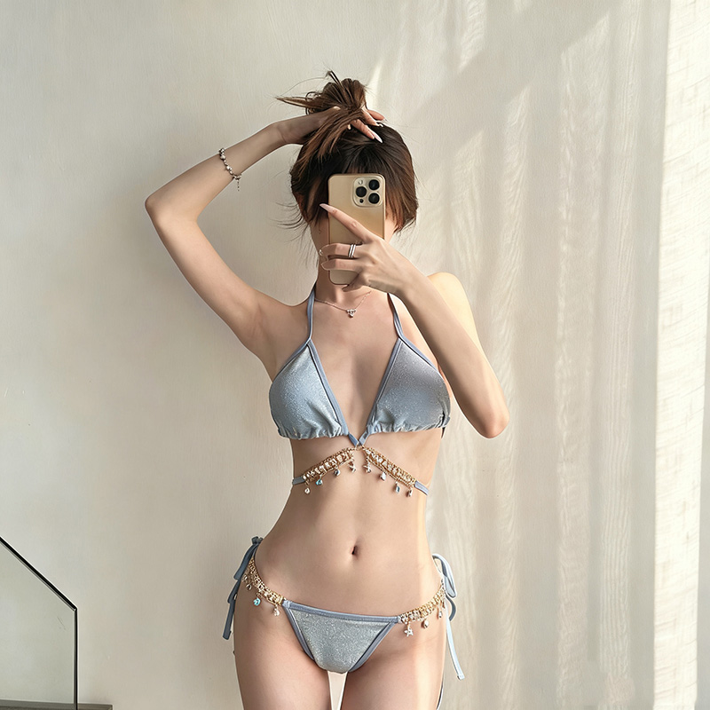 Swimsuit Female Mermaid Diamond Chain European And American Pure Sensual Style Lace-Up Triangle Bikini Three-Point Ins Sexy Vacation Swimsuit